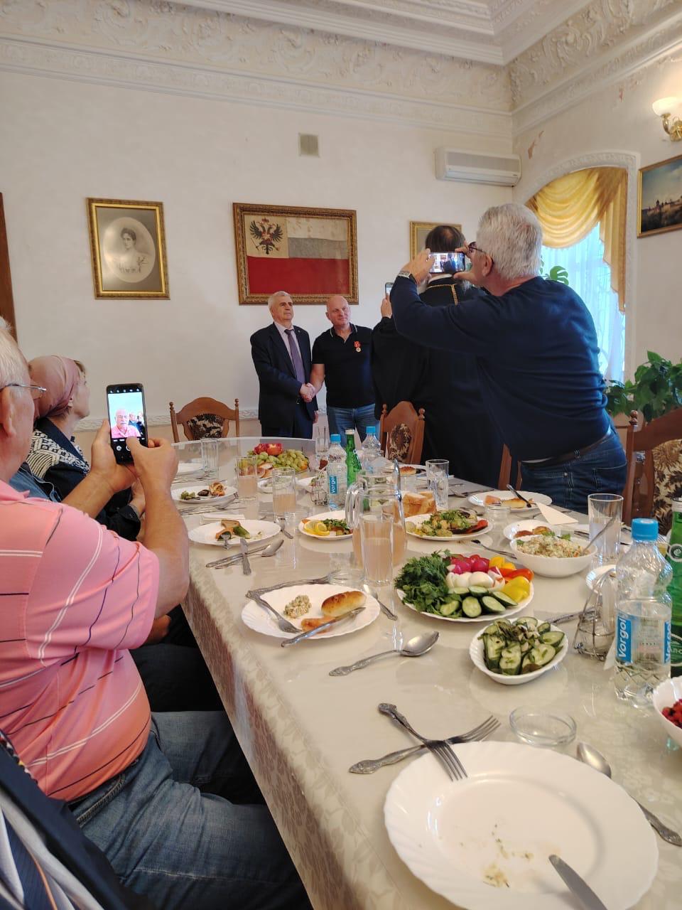 После молебна состоялась монастырская трапеза, на которой настоятель монастыря отец Сергий, заместитель председателя Центрального совета ВДПО Сергей Лысиков и ветеран пожарной охраны Подмосковного гарнизона Константин Кузнецов были награждены орденом «За заслуги», специально учрежденным Ассоциацией ветеранов гражданской обороны и противопожарной службы. Награждение проводил председатель Совета Ассоциации Михаил Шиянов.